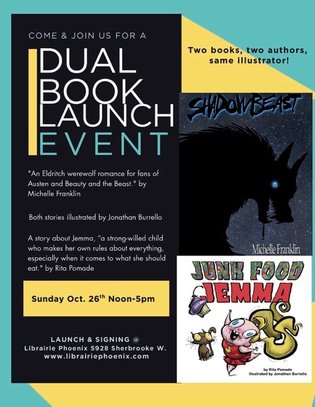 Oct. 26th Book signings & Launches of “Junk Food Jemma” by Rita Pomade & “Shadowbeast” by Michelle Franklin. This is an all day event, drop in and meet the authors & illustrator, grab a copy and collect autographs.